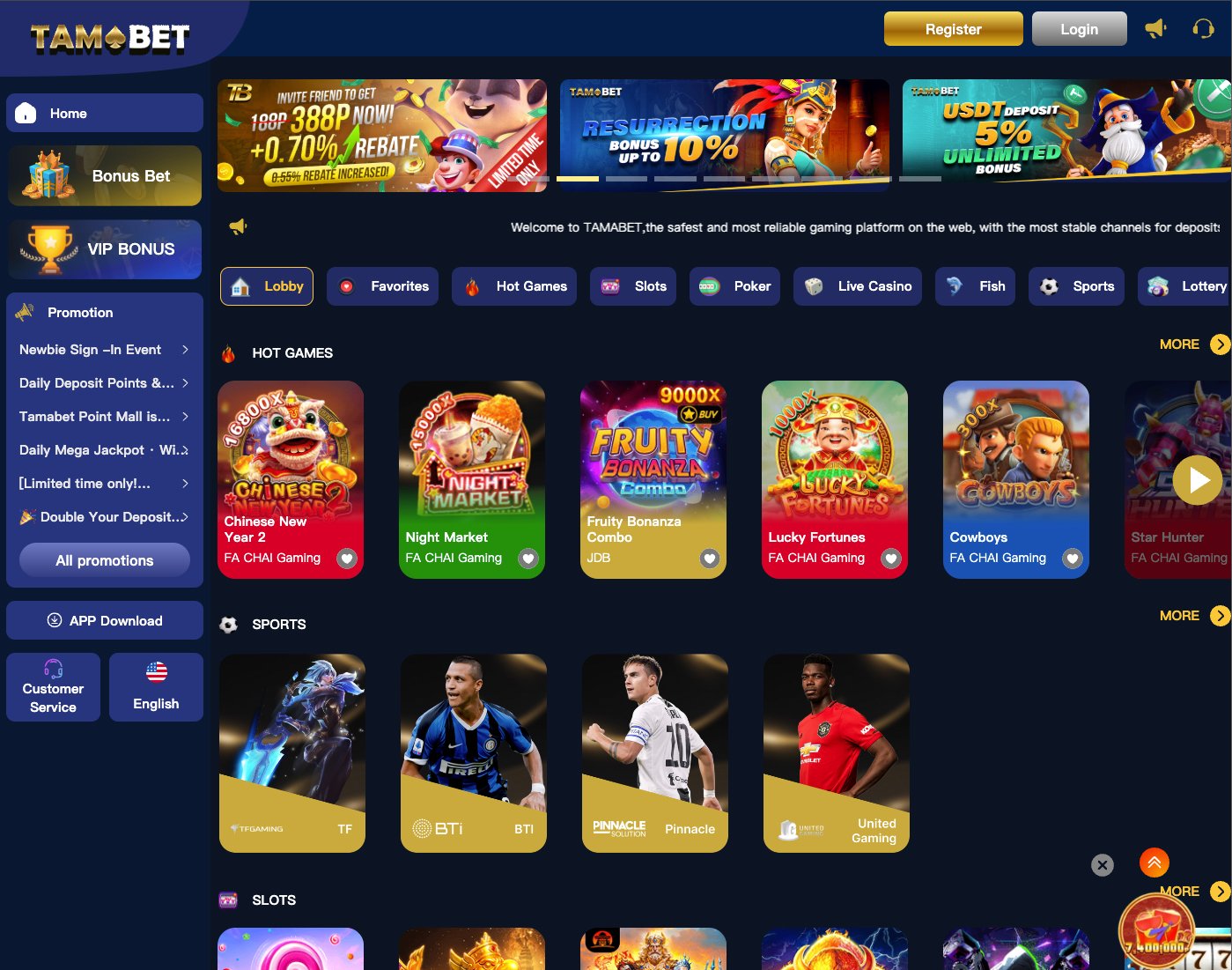 Tamabet has built a diverse game library that makes players come back for more. Check out some of the popular casino game categories below: